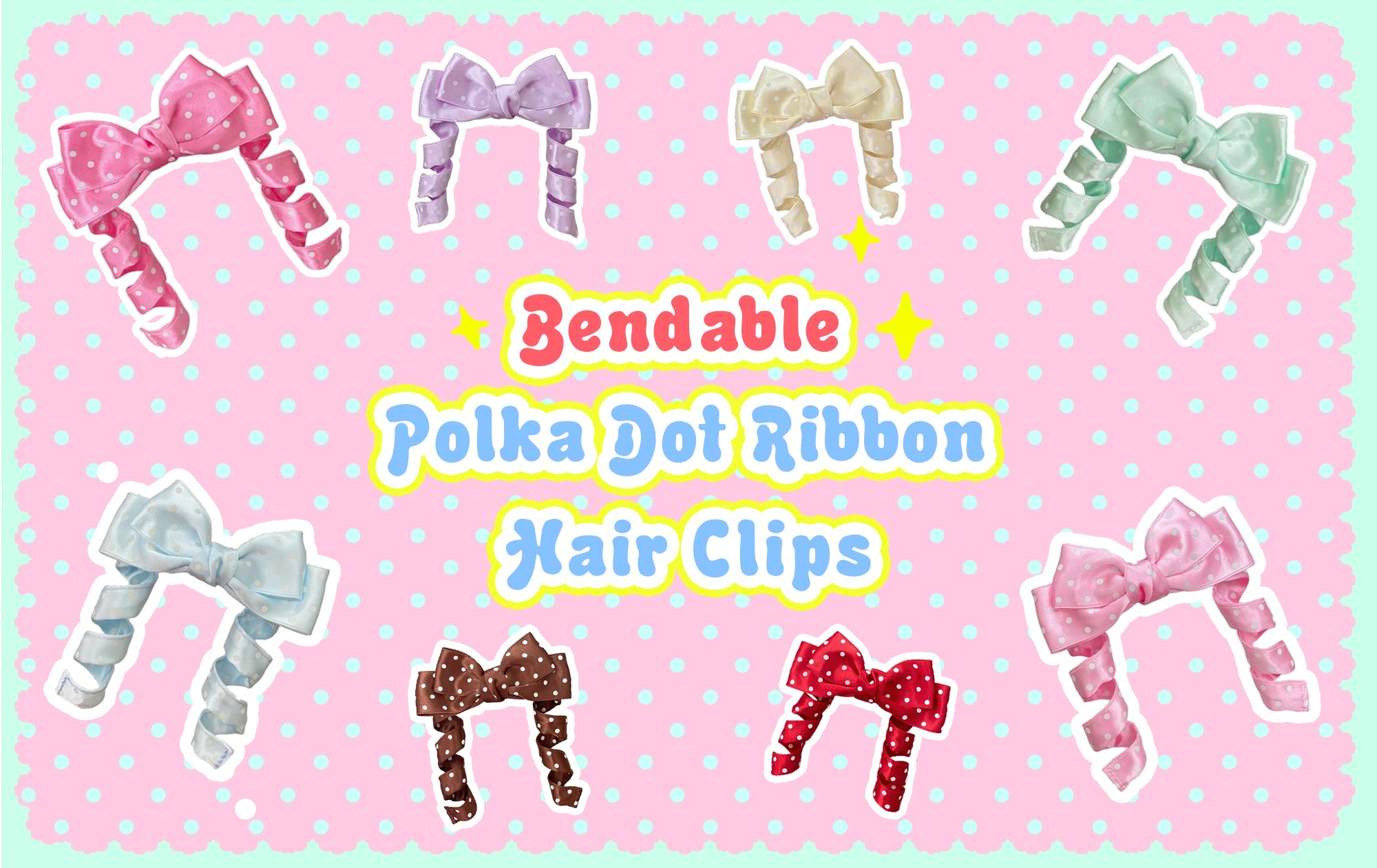 Bendable Polka Dot Ribbon Hair Clip with Curlable Tails