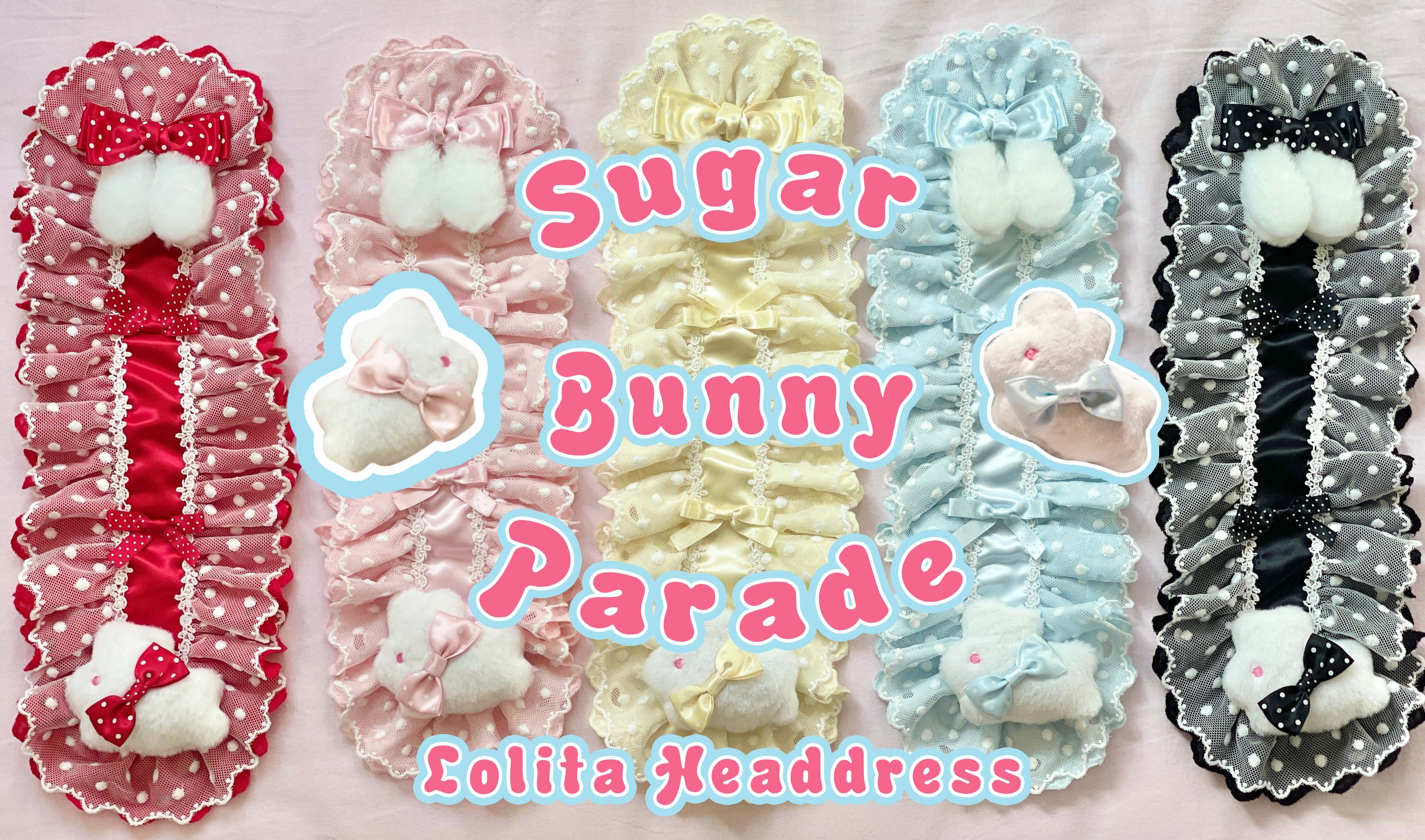 Sugar Bunny Parade Collection-Sweet Lolita Asymmetrical Headdress/wristcuffs